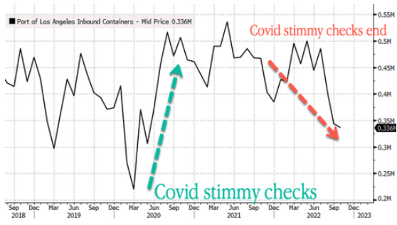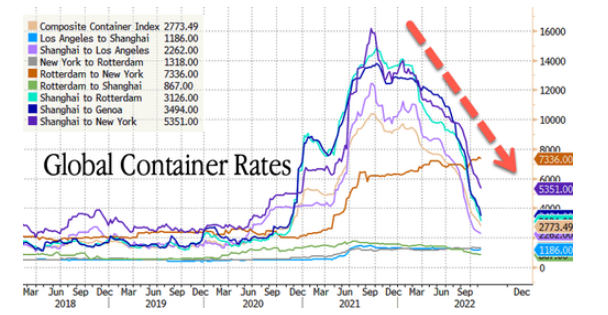 美國(guó)消費(fèi)需求也持續(xù)走弱,三季度美國(guó)個(gè)人消費(fèi)支出環(huán)比折年率增長(zhǎng)1.4%,低于前值的2%,耐用品、非耐用品消費(fèi)仍為負(fù)增長(zhǎng),服務(wù)消費(fèi)也有所走弱。正如Seroka所說(shuō),家具和家電等耐用品的消費(fèi)支出出現(xiàn)下降。由于進(jìn)口商因庫(kù)存所困擾,他們減少了訂單,導(dǎo)致集裝箱現(xiàn)貨價(jià)格暴跌。