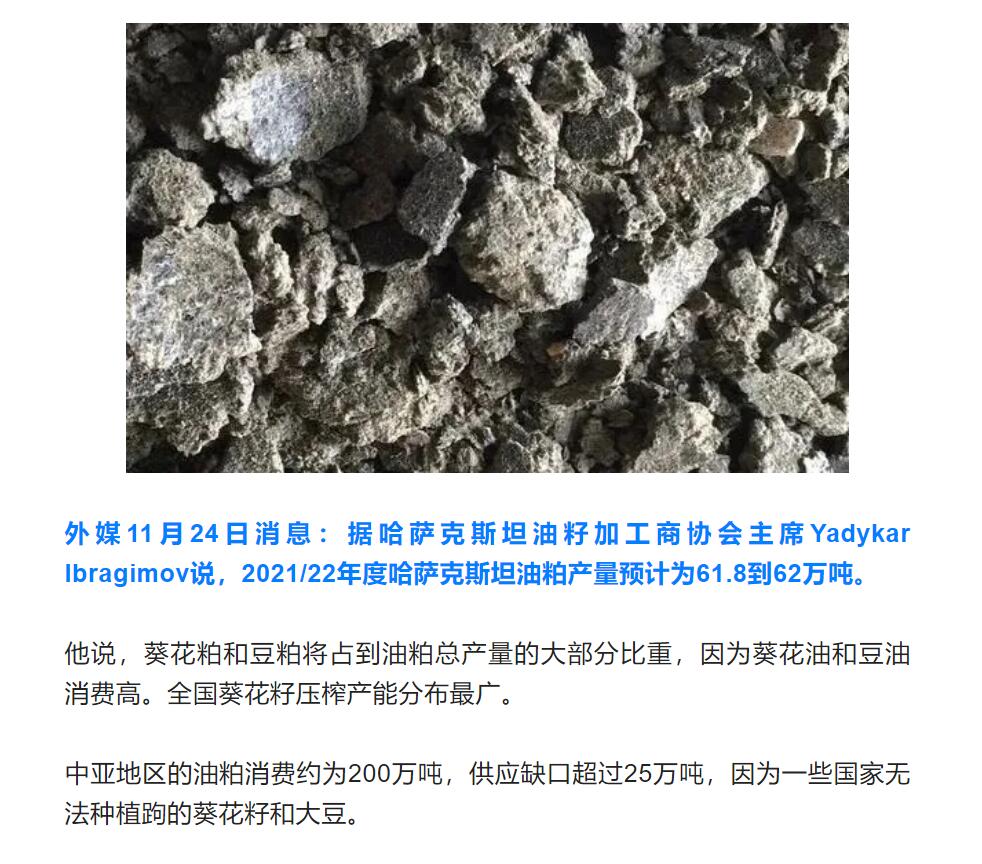 2021/22年度哈薩克斯坦油粕產(chǎn)量預(yù)計為62萬噸