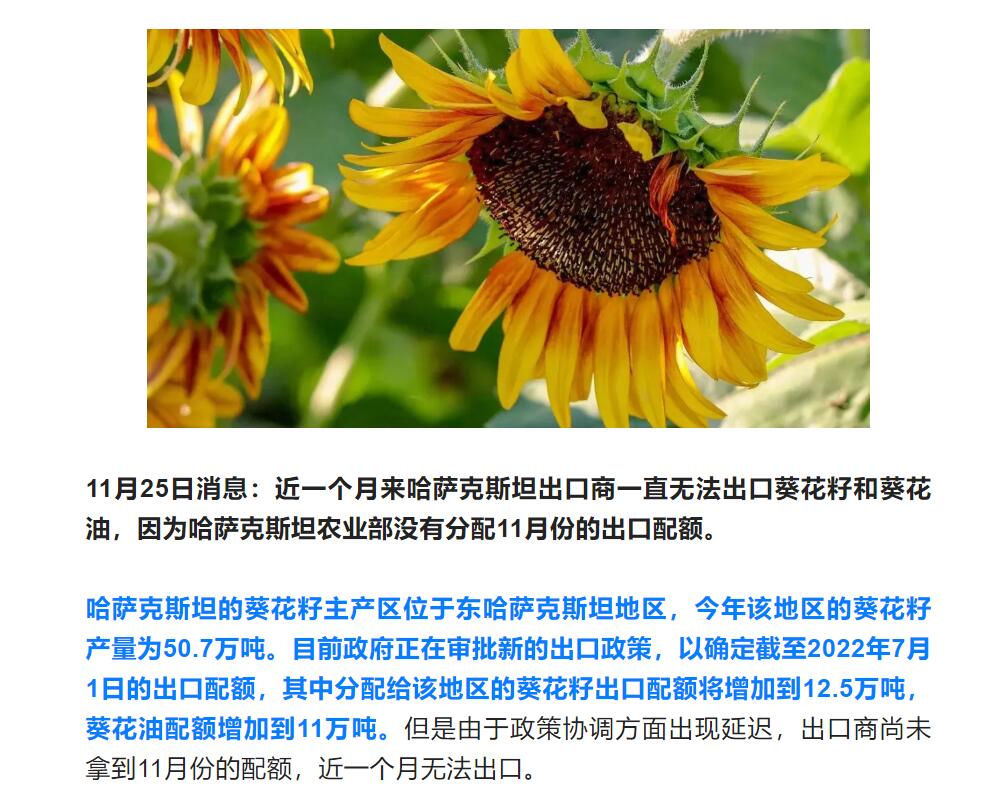 哈薩克斯坦暫停出口葵花籽及葵花油出口