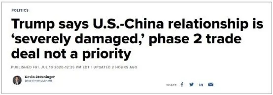 今年1月,美國(guó)和中國(guó)簽署了貿(mào)易協(xié)定,雙方稱該協(xié)定是第一階段的協(xié)議,隨后將進(jìn)行新的談判,爭(zhēng)取在第二階段,也可能是第三階段達(dá)成更廣泛的協(xié)議。但目前兩國(guó)都還未定下第二階段談判的時(shí)間。而隨著新冠疫情的爆發(fā),貿(mào)易談判也被迫擱置。疫情對(duì)經(jīng)濟(jì)帶來(lái)的影響,也使兩國(guó)越來(lái)越不可能實(shí)現(xiàn)第一階段協(xié)議中擴(kuò)大美國(guó)商品采購(gòu)的目標(biāo),與降低額外關(guān)稅的目的,雙方進(jìn)一步加劇了人們對(duì)新談判前景的懷疑。