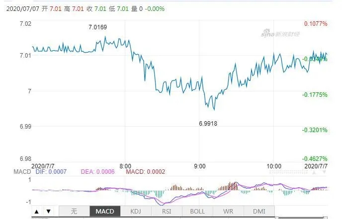 7月7日,人民幣對(duì)美元美元匯率延續(xù)了前一日的升值勢(shì)頭。更多反映國(guó)際投資者預(yù)期的離岸人民幣對(duì)美元匯率早盤走高,一度升破“7”關(guān)口,最高至6.9971,時(shí)隔3個(gè)多月首次收復(fù)這一關(guān)口。