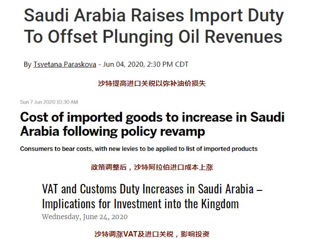 此外值得注意的是,從7月1日起,沙特增值稅(VAT)直接翻了三倍,由5%上漲至15%,并直接對(duì)電商征收增值稅。因?yàn)樯程氐恼?cái)政收入已經(jīng)全面告急。(阿聯(lián)酋VAT不變,仍然是5%),2020年第一季度,沙特阿拉伯的政府收入僅為1920億里亞爾,同比下降22%;石油收入同比下降了24%,至1290億里亞爾,非石油收入也暴跌了17%,2020年二季度負(fù)面因素對(duì)沙特經(jīng)濟(jì)的影響可能更大。但增值稅上漲之后,沙特消費(fèi)者將受到巨大沖擊,生活成本水漲船高,購(gòu)買(mǎi)力將同步下降。