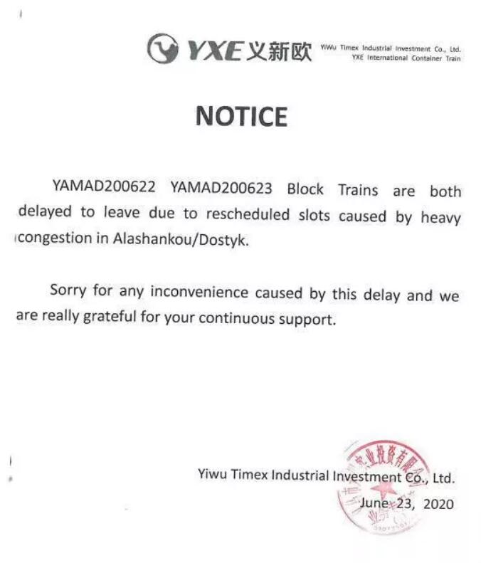 時(shí)間剛好過(guò)去一個(gè)星期,據(jù)悉,中歐班列、中亞班列的發(fā)運(yùn)情況并沒(méi)有好轉(zhuǎn)。6月30日,成都國(guó)際鐵路班列有限公司再發(fā)通知,通知中稱(chēng)鑒于山口、果斯口岸方向的嚴(yán)重?fù)矶虑闆r,從即日起到7月底,中歐只發(fā)圖定車(chē)次,中亞全部停裝。何時(shí)恢復(fù)正常發(fā)運(yùn),下個(gè)月視情況再定。其實(shí)在6月27-30日期間,山口方向中歐班列,圖定的6列計(jì)劃已經(jīng)減少為2列,而且7月份也僅批復(fù)圖定車(chē)次計(jì)劃。該公司再次聲明受到口岸擁堵的直接影響,近期部分班列可能發(fā)生延期發(fā)運(yùn)問(wèn)題、部分貨物的物流需求難以及時(shí)滿(mǎn)足,請(qǐng)相關(guān)部門(mén)人士做好組織和對(duì)外解釋。