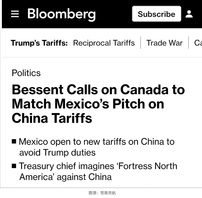 同時(shí),貝森特也鼓勵(lì)加拿大采取與墨西哥相同的行動(dòng),即對(duì)中國(guó)商品加征關(guān)稅。