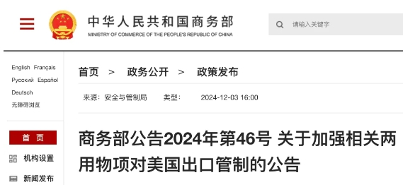 中方?jīng)Q定了!“加強(qiáng)有關(guān)兩用物項對美出口管制”