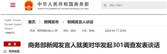 美貿(mào)易代表辦公室宣布發(fā)起針對中國海事、物流和造船業(yè)301調(diào)查,商務(wù)部:強(qiáng)烈不滿!