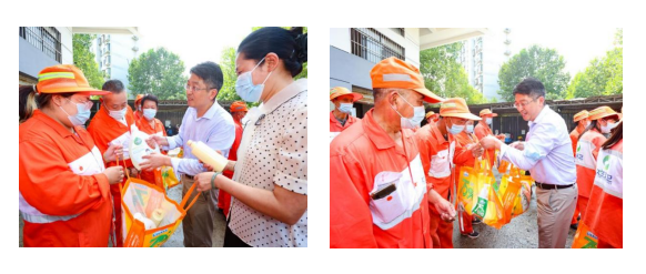為進一步增強人們珍愛環(huán)境,關(guān)心關(guān)愛城市一線美容師的意識。2022年7月22日上午,建鄴區(qū)政協(xié)副主席、民建建鄴區(qū)基層委主委劉嬿,建鄴區(qū)政協(xié)沙洲街道工委主任楊衛(wèi)華,區(qū)政協(xié)委員、民建建鄴一支部主委、南京邦農(nóng)國際貿(mào)易有限公司董事總經(jīng)理陳長偉、副主委戴書琳等一行對烈日下奮戰(zhàn)在一線的市容環(huán)衛(wèi)工人和河道養(yǎng)護員展開慰問,向高溫下的勞動者送去一份清涼和敬意。