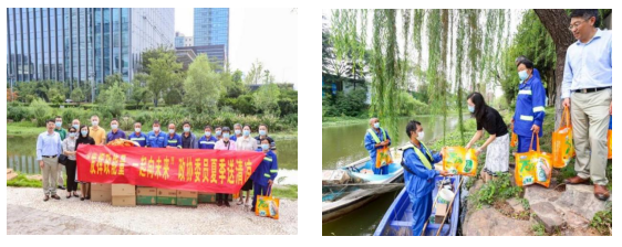 緊接著,民建會員一行又來到沙洲西河邊,為90多名辛苦勞作的河道養(yǎng)護員送來清涼。只見河道保潔員們正在打撈著河面的漂浮物,哪怕身處盛夏,整個城市像燒透了的磚窯使人喘不過氣來,他們還是辛勤工作著,皮膚也總被曬得黝黑。民建建鄴一支部主委、區(qū)政協(xié)委員、南京邦農(nóng)國際貿(mào)易有限公司董事總經(jīng)理陳長偉說道,“烈日下我們的市容環(huán)衛(wèi)工人、河道保潔員奮戰(zhàn)在一線,不辭辛勞,他們都是文明典范城市創(chuàng)建中的最美踐行者。作為轄區(qū)企業(yè),我們?yōu)樗麄兗佑?、給他們助力也是理所當(dāng)然的。” 領(lǐng)導(dǎo)班子在關(guān)心關(guān)愛,感嘆辛苦河道保潔員不易的同時,也呼吁廣大群眾要自覺做到珍愛環(huán)境,共同維護整潔有序的身邊環(huán)境。