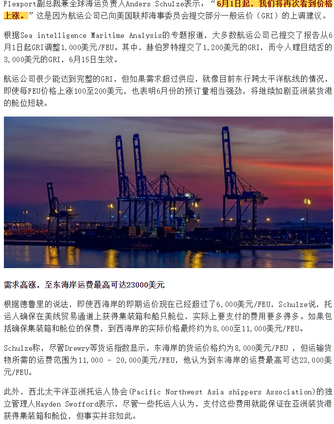 重磅!新一波漲價潮將來襲!美線海運最高或可達23000美元!