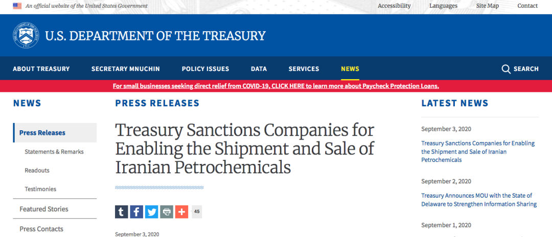 根據(jù)美國(guó)財(cái)政部發(fā)布的聲明,美財(cái)政部已將來(lái)自伊朗、阿聯(lián)酋以及中國(guó)的6家公司列入被制裁實(shí)體名單,理由是這些公司為伊朗的石油化工產(chǎn)品提供運(yùn)輸與銷(xiāo)售渠道,并為之前已被制裁的眾祥石化有限公司(Triliance Petrochemical Co. Ltd,總部位于香港)提供支持。