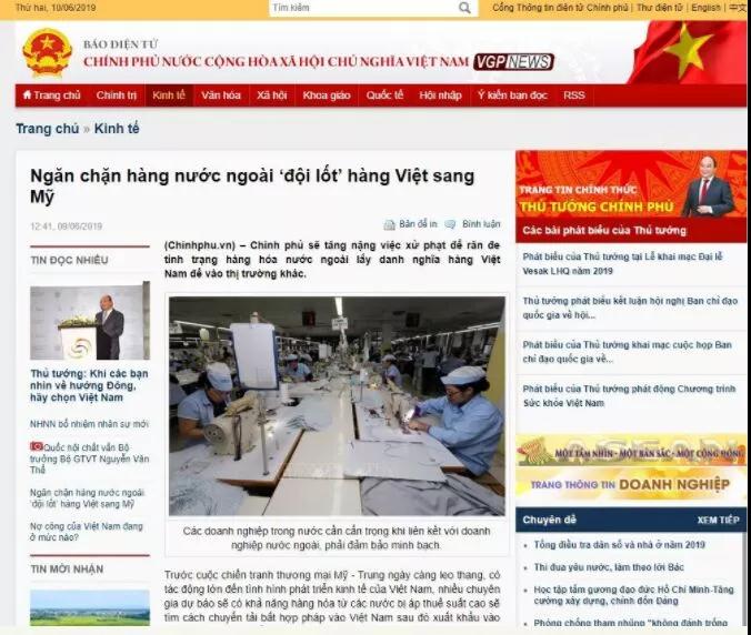 越南在聲明中承諾會對貿(mào)易相關(guān)欺詐行為加大處罰,這加劇人們對部分中國出口商正在非法改變訂單路徑的擔(dān)憂。越南國會經(jīng)濟(jì)委員會常務(wù)委員Do Van Sinh說,允許被虛假貼牌的中國產(chǎn)品流入美國,越南可能遭到美國懲罰。聲明稱,越南海關(guān)正在制定一種能更好地識別并懲罰有關(guān)違規(guī)企業(yè)的程序。