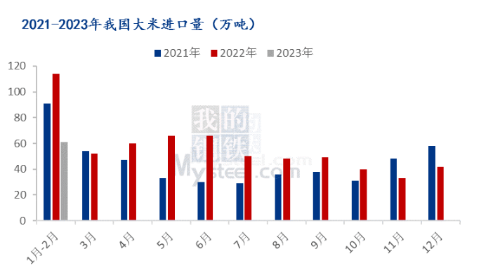 具體來看,2月份我國進(jìn)口稻谷及大米36萬噸,同比減少35.4%,1月至2月我國累計進(jìn)口稻谷及大米61萬噸,與上年同期相比減少46.1%。