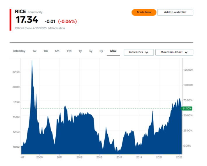 除了供應(yīng)緊張的挑戰(zhàn)外,自2022年2月俄烏沖突爆發(fā)以來其他主要谷物價格飆升,大米也成為越來越有吸引力的替代品,進(jìn)而推升了需求。