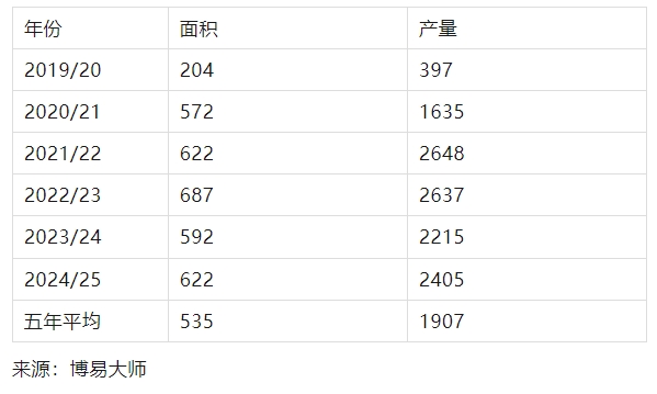 面積:千公頃;產(chǎn)量:千噸