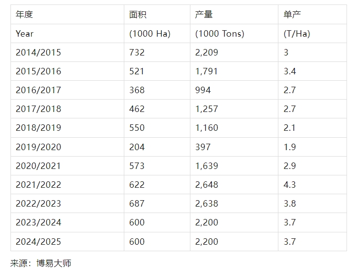 2014-2025年澳洲高粱產(chǎn)量和面積趨勢