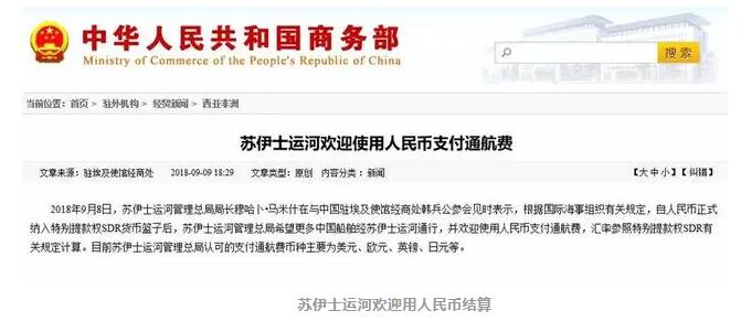 蘇伊士運(yùn)河歡迎用人民幣結(jié)算