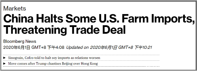 近日網(wǎng)上有相關消息稱,中國要求國營企業(yè)暫停購買來自美國的大豆和豬肉,同時暫停了美國玉米和棉花的大量采購。并稱,如果華盛頓對香港采取更多行動,中國準備擴大這一清單。
