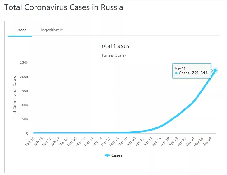 俄羅斯衛(wèi)星通訊社5月11日報道稱,俄羅斯新冠病毒疫情防控指揮部當(dāng)天表示,在過去24小時內(nèi),俄羅斯新增11656例新冠肺炎確診病例,累計確診221344例。