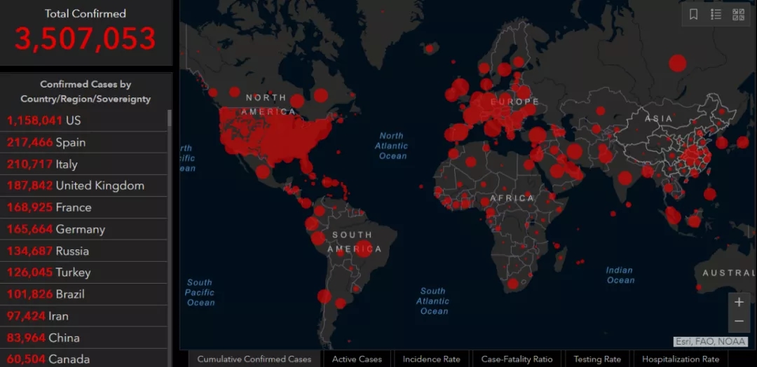 根據(jù)最新統(tǒng)計數(shù)據(jù),全球累計確診新冠肺炎超過368萬例,美國累計確診超過124萬例。其中,聚集性感染風(fēng)險仍在上升,西班牙超42000名醫(yī)護人員感染新冠肺炎,印度最大的貧民窟累計確診數(shù)字逼近600例,且仍在上升。
