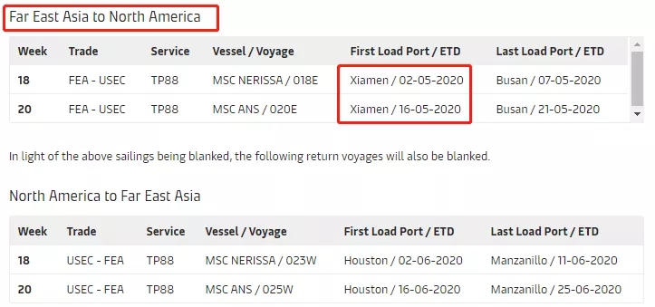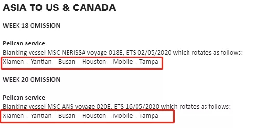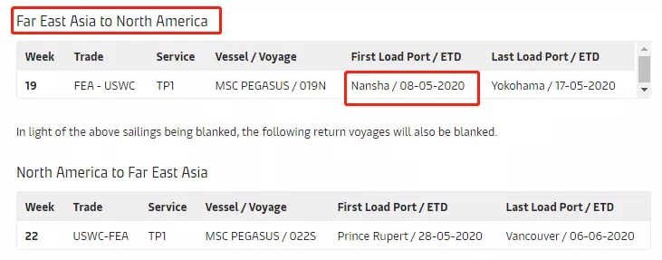因預(yù)期市場需求下降, 以下是四月一日 發(fā)布的四至五月份泛太平洋航線航次取消信息的更新,新增及更改部分已作紅色標(biāo)記,請以本信息取代于四月一日 發(fā)布的泛太平洋航線服務(wù)信息。